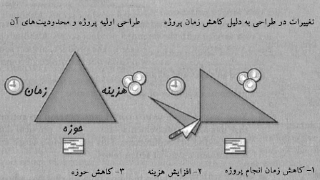 هر پروژهای با بودجهای مشخص و محدود باید در مدتزمان مشخصی اجرا شود و در نهایت به اهدافی که از قبل تعیین شده برسد. اگر پروژه در زمان مشخص انجام نشود یا با کمبود بودجه مواجه شود، کل کار به مشکل میخورد و همهٔ معادلهها اشتباه از کار در میآیند.
