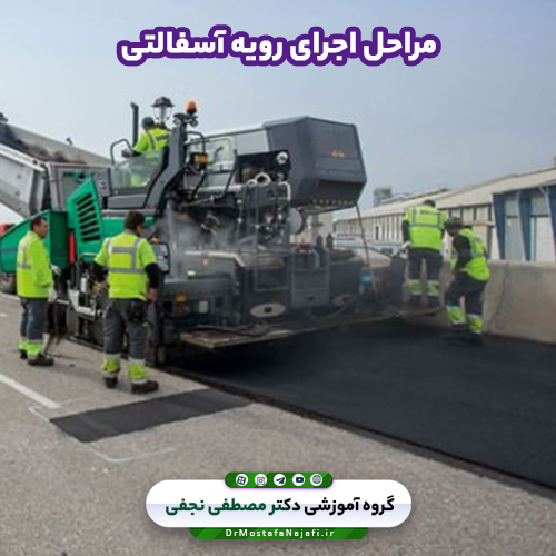 - ریختن آسفالت گرم تحت دمای خاص و بهصورت دستی یا مکانیزه بر روی سطح آماده شده