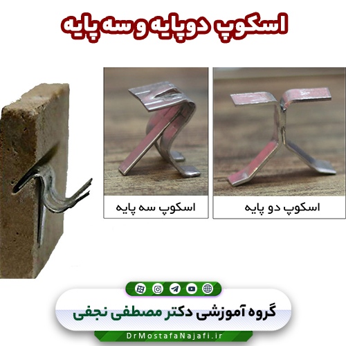 - دُم اسکوپ: سیم اسکوپ در محل اتصال دو سر آن باید بهاندازه 15 سانت باقی باشد تا اسکوپ به میزان کافی با ملات پشت آن درگیر شود.